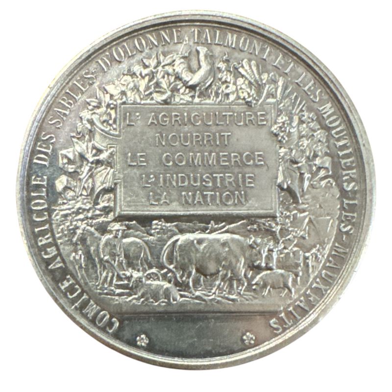 Médaille - L'agriculture est digne de tous les honneurs - Sables d'Olonne,Talmont et les moutiers les maux faits - argent 32,20g