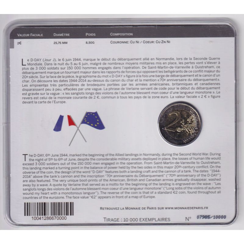 2€ France 2014 - 70ème anniversaire du D-Day - Brillant Universel