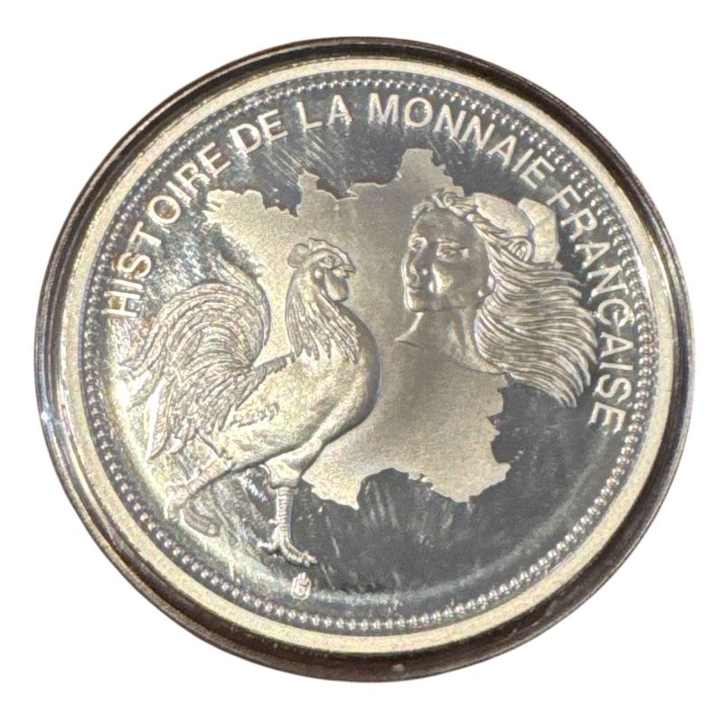 Médaille - 2 Francs Commerce dorée et incrustée - 1920-27 - Tour Eiffel - Histoire de la monnaie Française - cuivre argenté