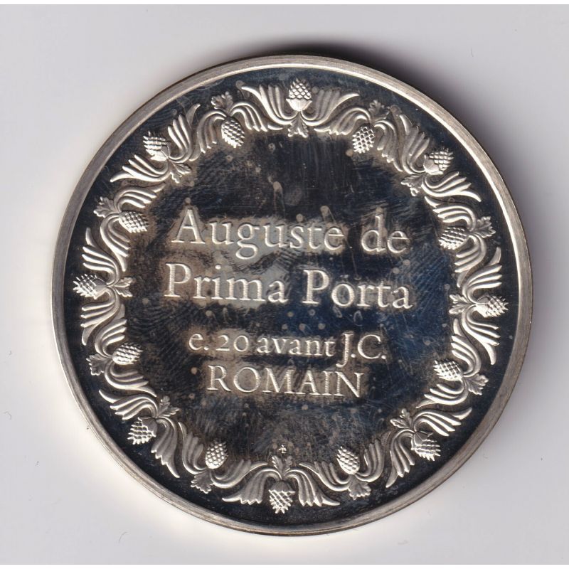 Médaille - Auguste de Prima Porta - 20 av JC - Romain - Les 100 plus grands chefs-d'oeuvre - argent 65g 0,800 - 50,5mm - SUP