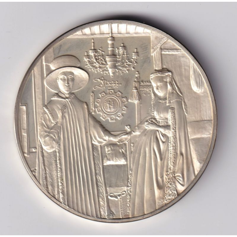 Médaille - Portrait d'arnolfini et sa femme- 1434 - Jan van eyck - Les 100 plus grands chefs-d'oeuvre - argent 65g 0,800 - 50,5m
