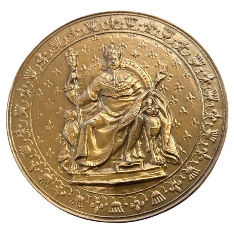 Médaille - Reproduction - Avenement au trône Louis XVIII - commune de Sommieres - 1983 - bronze 86mm - SUP